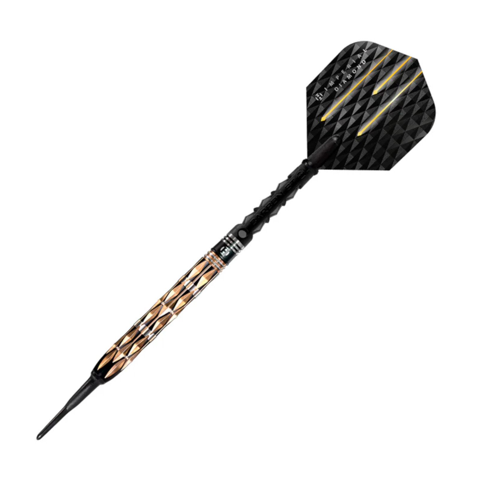 Der Imperial Diamond von HARROWS vereint herausragende Qualität mit luxuriösem Design. Gefertigt aus hochwertigem 90% Tungsten, überzeugt dieser Softdart durch seine außergewöhnliche Balance, Langlebigkeit und optimale Kontrolle beim Wurf. Das präzise Diamant-Grip-Profil bietet sicheren Halt und ein konstant sauberes Abwurfgefühl – ideal für ambitionierte Spieler, die auf jedes Detail achten.